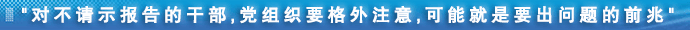 当前,在请示报告制度方面存在不少问题。有的干部目无组织,干了什么、人跑到哪里去了,组织上都不知道,泥牛入海无消息。有事要找他,众里寻他千百度,颇费周折。孔子说“游必有方”,我们的领导干部特别是高级干部要是连这一条都做不到,那就成问题了。对不请示报告的干部,党组织要格外注意,可能就是要出问题的前兆。
