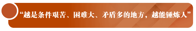 越是条件艰苦、困难大、矛盾多的地方,越能锤炼人。干部要深入基层、深入实际、深入群众,在改革发展的主战场、维护稳定的第一线、服务群众的最前沿砥砺品质、提高本领。《在全国组织工作会议上的讲话》(2013年6月28日)