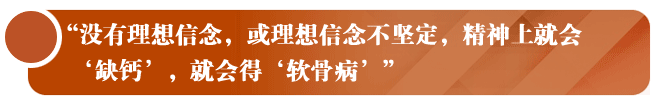 现在,形式主义、官僚主义、享乐主义和奢靡之风为什么盛行?为什么不断有人沦为腐败分子,走向犯罪的深渊?说到底,还是理想信念不坚定。我常说,理想信念是共产党人精神上的“钙”,理想信念坚定,骨头就硬;没有理想信念,或理想信念不坚定,精神上就会“缺钙”,就会得“软骨病”。《在全国组织工作会议上的讲话》(2013年6月28日)