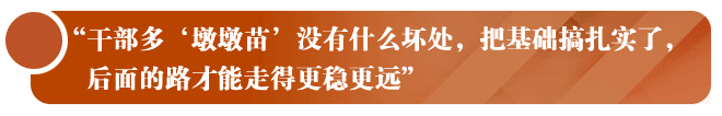 许多同志有这样的体会,参加工作后,在普通岗位上经历一些难事、急事、大事、复杂的事,能够更加深刻地感受国情、社情、民情,也就是人们常说的“接地气”,正所谓“不登高山,不知天之高也;不临深溪,不知地之厚也。”早熟的果子长不大,拔苗助长易夭折。干部多“墩墩苗”没有什么坏处,把基础搞扎实了,后面的路才能走得更稳更远。《在全国组织工作会议上的讲话》(2013年6月28日)