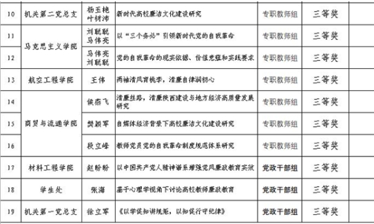 近日,陕西省廉政文化研究会公布了《关于表彰“加强党的纪律建设 推进党的自我革命”主题征文获奖论文和优秀组织单位的决定》,我校共有19项作品获奖,其中张菲菲等7位教师荣获二等奖,王鑫宇等12位教师荣获三等奖,学校荣获优秀组织奖。
