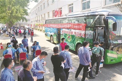 5月18日,新冠疫苗移动接种车开进沈阳市三台子街道疫苗接种点。接种现场划分出等候、登记、分诊、接种、留观5个区域,程序分明、井然有序。(图片来源:人民视觉)