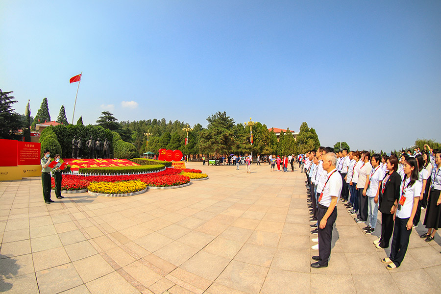 1949年3月,毛泽东在七届二中全会上对全党提出:“务必使同志们继续保持谦虚、谨慎、不骄、不躁的作风,务必使同志们继续保持艰苦奋斗的作风。”“两个务必”的告诫,至今仍然警醒着共产党人走好“赶考”之路。图为6月1日,党员干部在西柏坡纪念馆广场重温入党誓词。(图片来源:人民视觉)