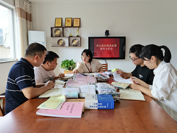 丽水市纪委监委建立行贿人员数据库,将行贿人列入黑名单,实行动态管理,联合惩戒。图为庆元县纪委监委干部借助行贿人员数据库信息对案件进行分析。吴会芬 摄