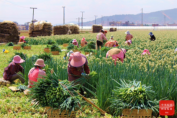 随着谷雨的到来,云南省祥云县农民们抢抓有利时机,收割成熟的大葱,田间地头呈现一派繁忙景象。(云南省祥云县纪委监委供 郑秉德 摄)