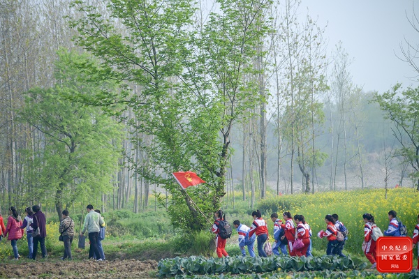 为抓住最后一抹春光,安徽省宣城市泾县第一中心小学师生们一起踏青赏春,感受春天的气息。(安徽省宣城市泾县纪委监委供 翟军 摄)