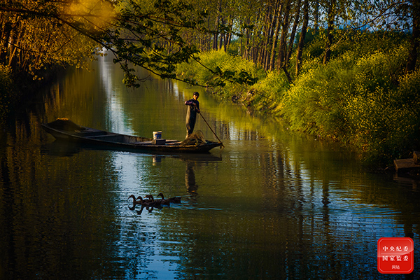 谷雨,意味着寒潮天气基本结束,气温适宜,水下的鱼儿也十分活跃。江苏省高邮市钱厦村村民们一大早起来就撑着小船到河里去,忙着查看昨夜下到河道里的网兜是否有收获。(江苏省高邮市纪委监委供 尹伟 摄)