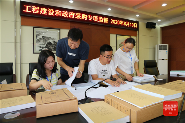 江苏省高邮市纪委监委探索运用派驻交叉联动监督机制,将全市14个派驻纪检监察组分成3个联动监督检查组,对全市13家部门单位开展交叉联动监督,切实解决派驻机构不愿、不能、不会监督等问题。图为该市纪委监委第二联动监督组对相关单位开展工程项目和政府采购专项监督。(江苏省高邮市纪委监委 谭倩 摄)