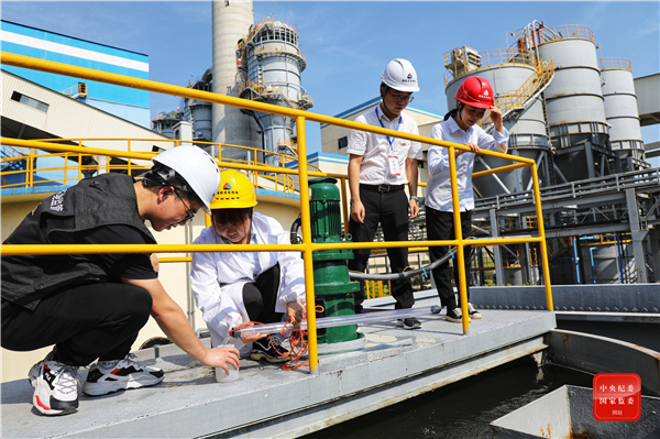 福建省福鼎市纪委监委建立“1+X”监督机制,联合职能部门深入辖区企业,对企业环保情况开展监督检查,做深做实“嵌入式”监督,为打好“三大攻坚战”提供坚强的纪律保障。图为该市龙安开发区纪检监察干部在辖区企业走访,了解企业污水治理情况。(福建省福鼎市纪委监委 陈是 摄)
