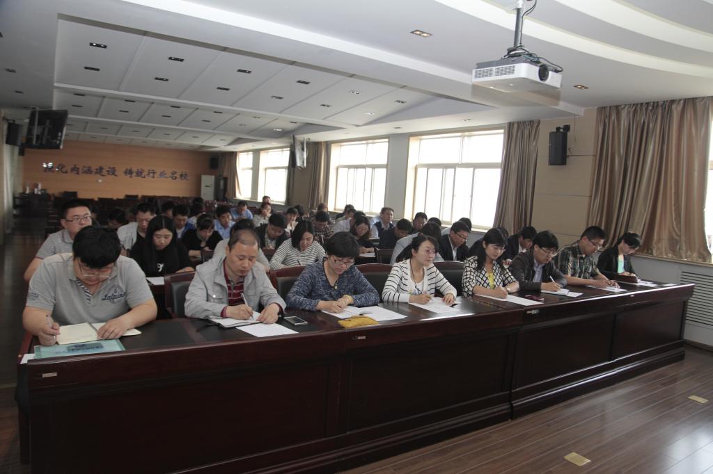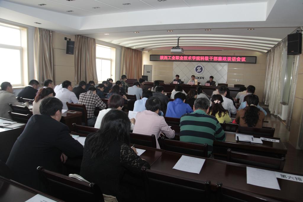 4月29日上午,我院科级干部廉政谈话会在崇文南楼第五会议室举行,学院纪委书记康强,组织部部长张普礼,纪委副书记、监察处处长杨建民出席会议,全院55名科级岗位干部参加谈话会,并签订了《科级岗位干部廉洁从政承诺书》,会议由组织部部长张普礼主持。